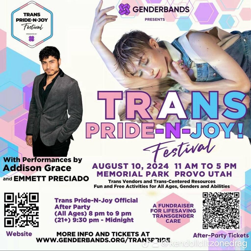 Join Anya Bacon, DJ Fuego, Andrea Morton, and, of course, FFP's hilarious Kendoll Clitzone at the Trans Pride-N-Joy Festival (at Memorial Park) and Afterparty (at Mosaic's Bookstore) in Provo, UT!