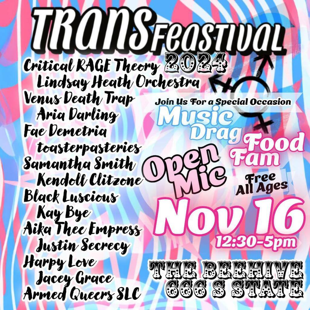 Saturday, come celebrate Transfeastival, with Kendoll Clitzone as well, from 1pm - 5pm at The Beehive, at 666 S. State, for food, fun, and community!