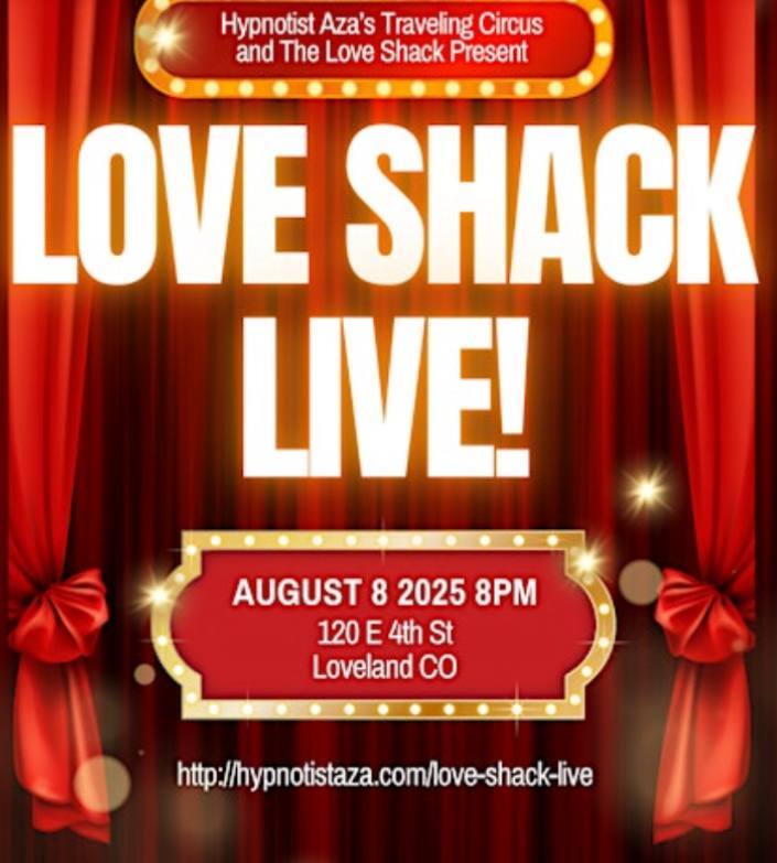 Kendoll and Lee are performing once more with the amazing Hypnotist Aza, as she hosts "Love Shack Live", at The Love Shack - Craft Mocktail Bar, in beautiful Loveland, Colorado!