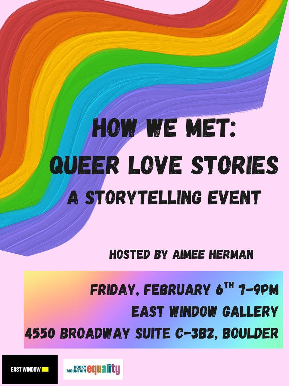 Please join us at the East Window Gallery, in Boulder, for this, and other Queer Love Stories, hosted by the amazing Aimee Herman!