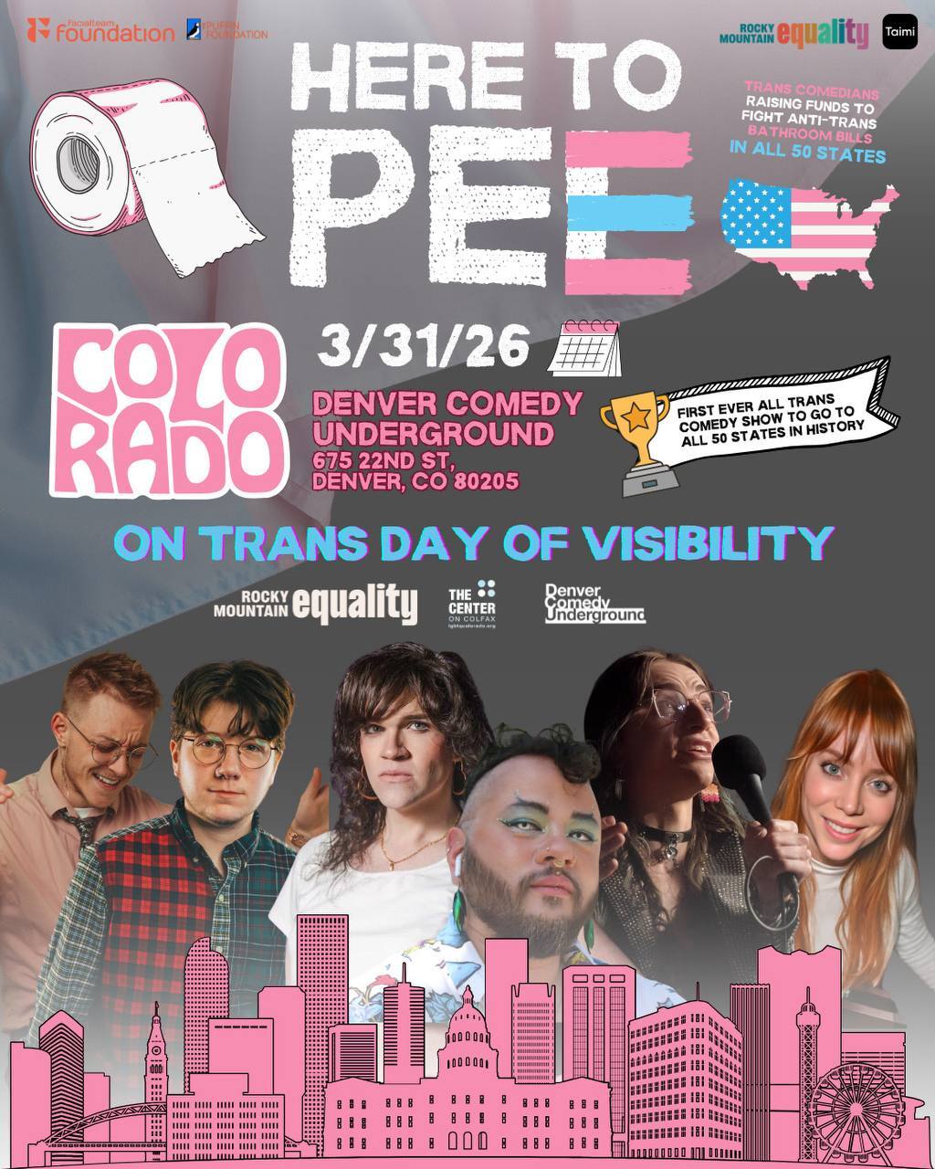 The "Here to Pee" tour is more than a comedy show; it's a movement to flush away discriminatory laws through the power of humor. By supporting this tour, you are helping to create a platform for trans rights and equality, connecting communities through shared experiences and laughter. All proceeds are donated to local LGBTQ+ non-profits battling anti-LGBTQ+ ballot initiatives on the local level.